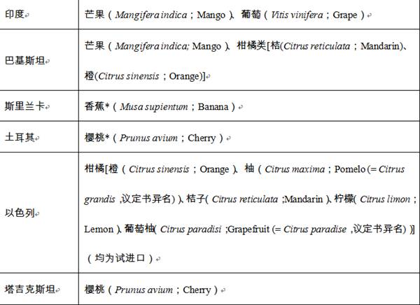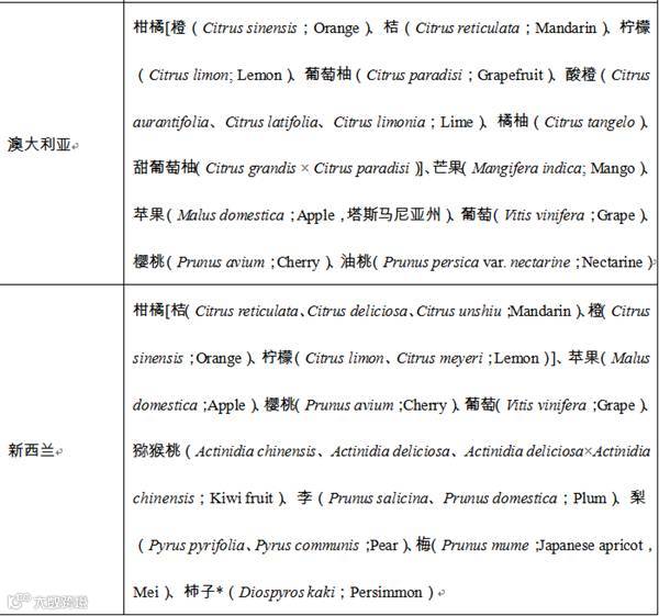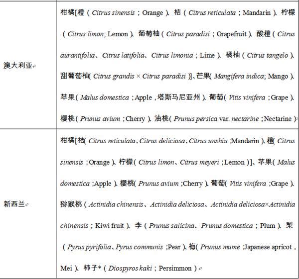 (2) * 已签订议定书,但未完成准入程序,目前暂不能进口。
