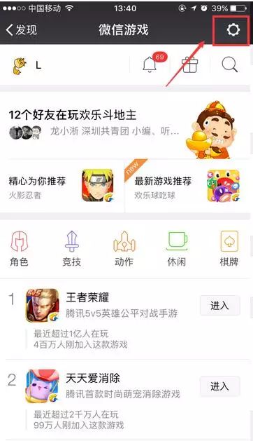 同样是进入微信后,依次点击 【发现】—【游戏】,点击页面顶部的一个圆圈的图标—然后分别将「接收排行榜赞消息」以及「接收游戏圈消息」关闭即可。