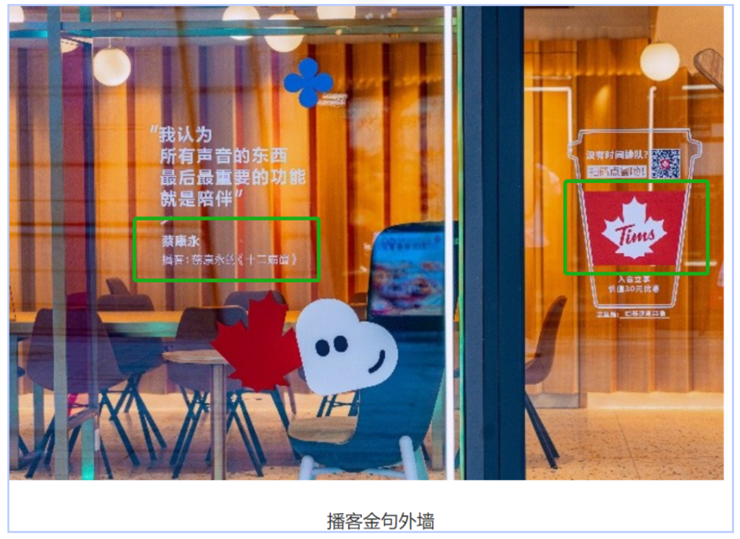 此次联合腾讯QQ音乐打造的“扑通”主题咖啡店设计别具匠心。双方不仅在Tims咖啡小程序上联名推出由3款Tims咖啡人气产品和QQ音乐豪华绿钻礼包组成的限量“Q音四重卡”,还有官方歌单、主题播放器皮肤等联名内容,构建“咖啡+音乐”的生活新场景,也带来线上、线下生活的沉浸式体验。