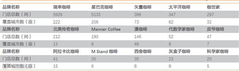 现制咖啡市场庞大,目前中国现制咖啡市场呈现两大巨头+众多小而美并存的发展格局。随现制咖啡市场逐渐庞大,人均消费量逐渐提升,咖啡消费人群产生多元化的消费需求,偶尔通过小众品牌及口味进行调剂。因此,市场诞生了一系列门店500家以下的小众咖啡品牌,如矢量咖啡、太平洋咖啡、咖世家、北美传奇咖啡、Manner Coffee、代数学家咖啡、皮爷咖啡、阿拉比卡咖啡等。其中,中国本土品牌瑞幸咖啡凭借对中国本地市场的了解实现门店迅速扩张。