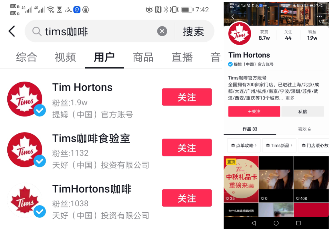 TIMS官方有3个抖音号,但粉丝数都不算多,加起来2万出头。