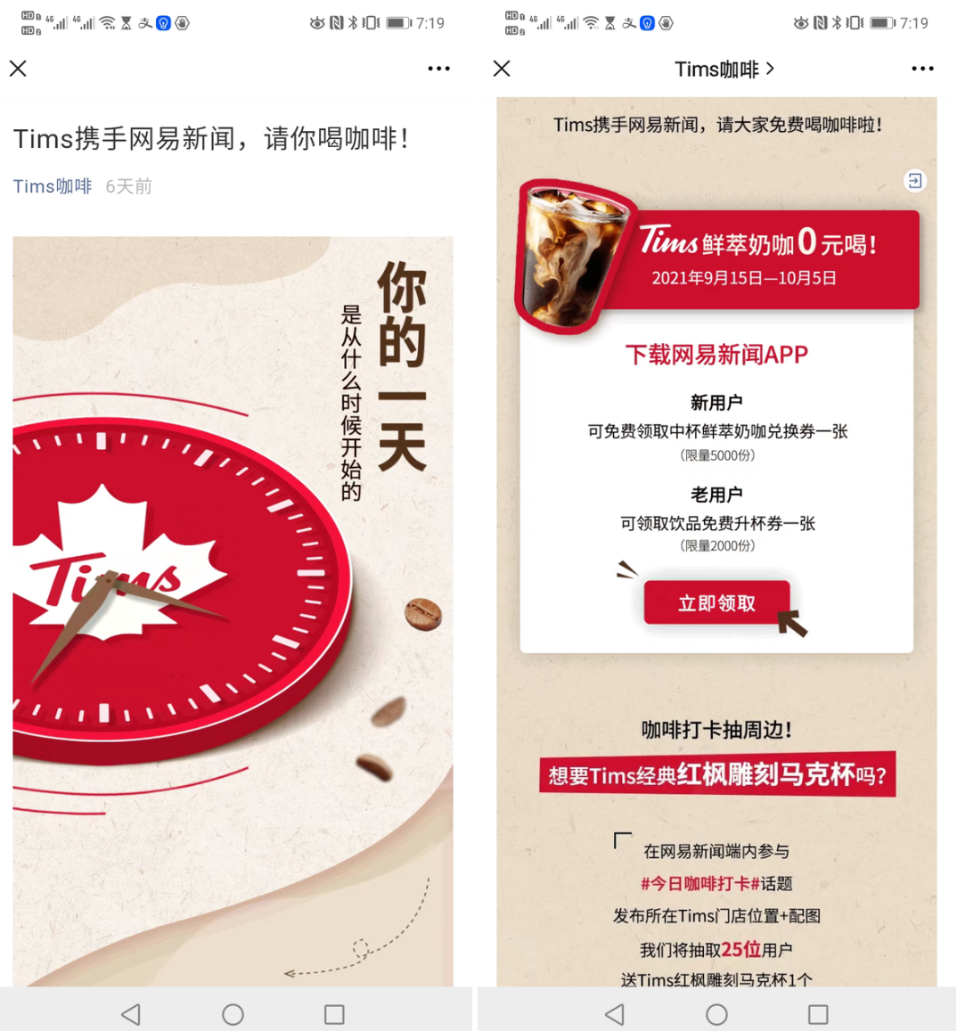 联手网易新闻,下载网易新闻免费喝咖啡