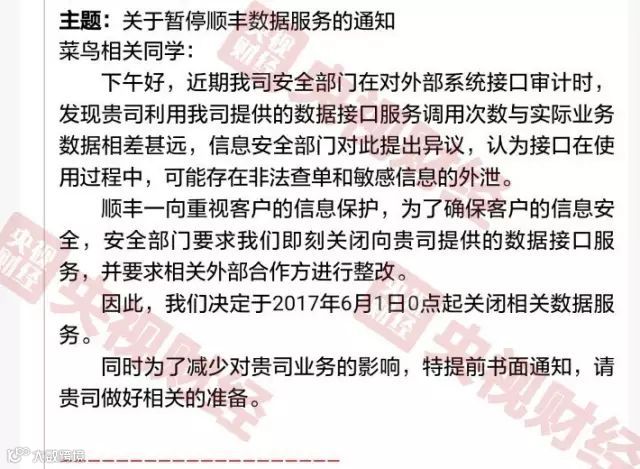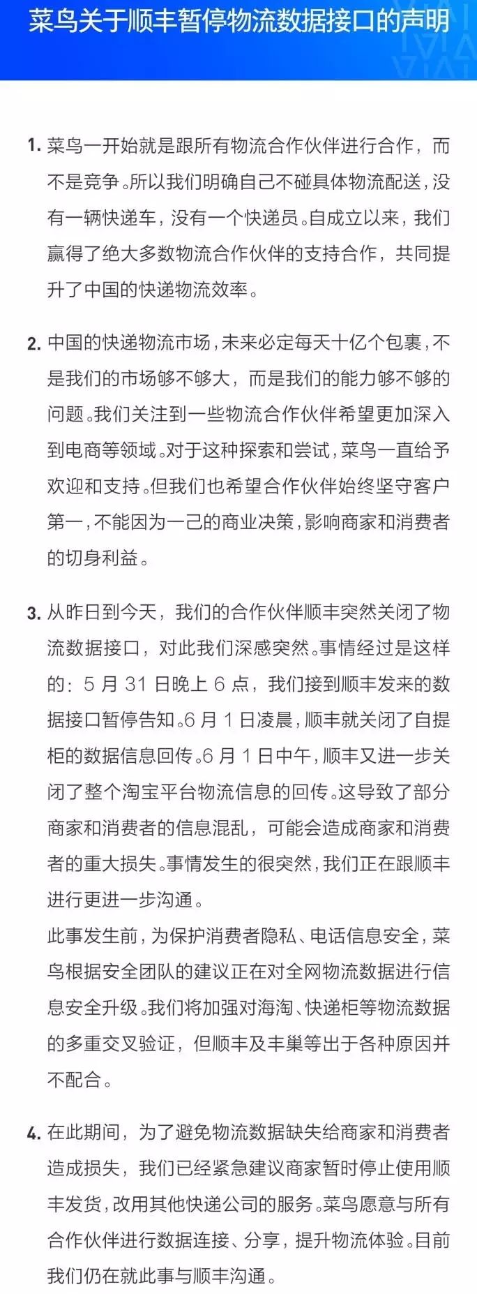 顺丰突然关闭物流接口,菜鸟发了一份这样的声明