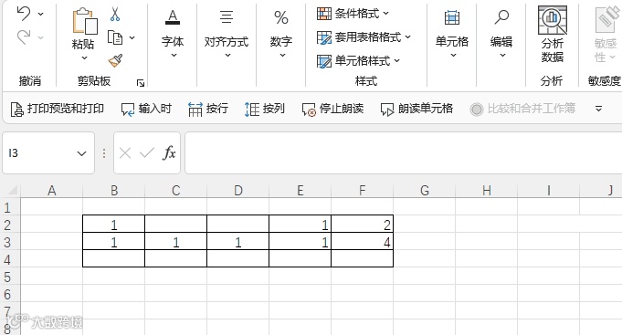 那么例子中的B3:D3区域是怎么做到合并后还保留了原本数据的呢?