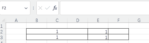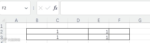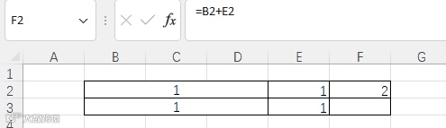 这次在F2输入公式:=SUM(B2:E2),返回结果2。