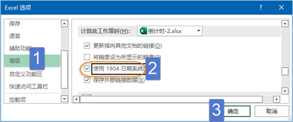 再切换到【高级】选项卡下,勾选【使用1904日期系统】,单击【确定】关闭对话框。