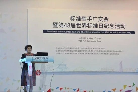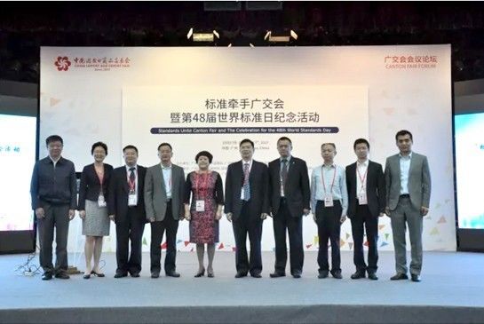 10月17日,由广州市质监局、广州市商务委、中国对外贸易中心主办,广州市标准化研究院、国家技术标准创新基地(广州)、国家标准化管理委员会标准信息中心承办的标准牵手广交会暨第48届世界标准日纪念活动在广州国际会展中心成功召开。来自全国各地质监部门企事业单位代表共计近200人参加,国家标准委副主任于欣丽、广州市政府副秘书长张建华、中国对外贸易中心主任李晋奇、广东省质监局副局长高国盛、广州市商务委副主任陈泳芳等领导出席。