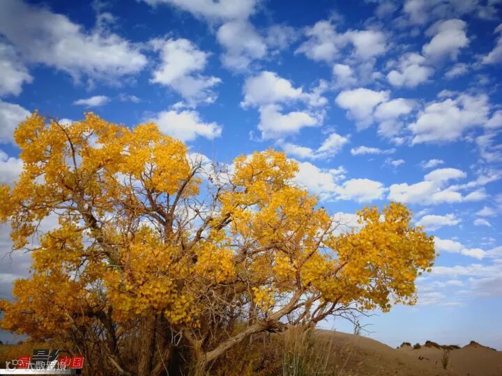 青海秋景:青海省海西蒙古族藏族自治州格尔木胡杨林秋景。金黄的胡杨在秋日阳光的映衬下更显明媚灿烂。(杨寿德摄)