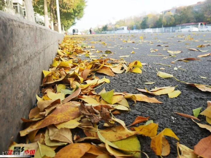 天津秋景:清晨,秋风吹落很多黄叶,这些叶子随后就会被清洁工人扫走,只有公园还能看到些许它们的身影。(胡彦竹摄)
