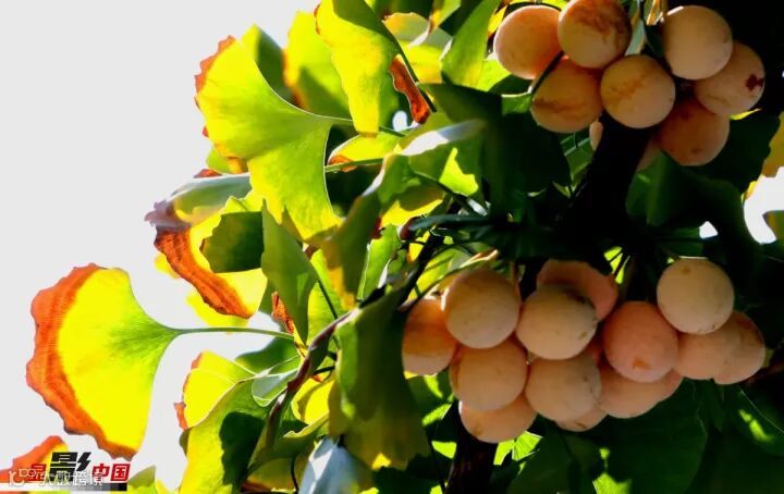 江苏秋景:10月8日,苏州凤凰街旁缤纷的银杏叶与酷似玛瑙的秋果相映成景。当日是农历二十四节气中的寒露,古城苏州街头、路旁由青转黄的片片银杏树叶在秋日阳光的映照下,宛如一只只振翅欲飞的彩蝶,并与挂满枝头的银杏秋果相映成景,吸引了许多路人的目光。(王建中 摄)