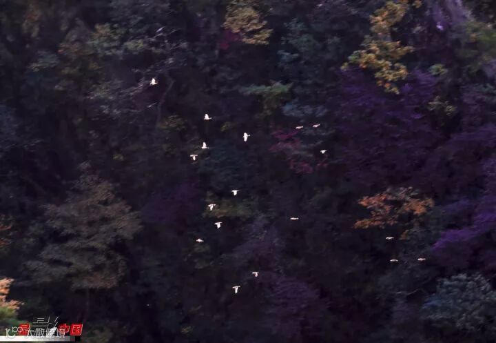 安徽秋景:10月24日,鸟儿在黄山风景区内自由飞翔。 (水从泽 摄)