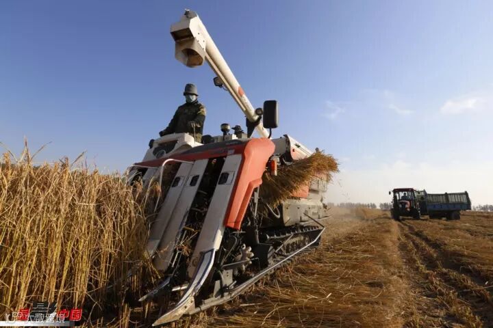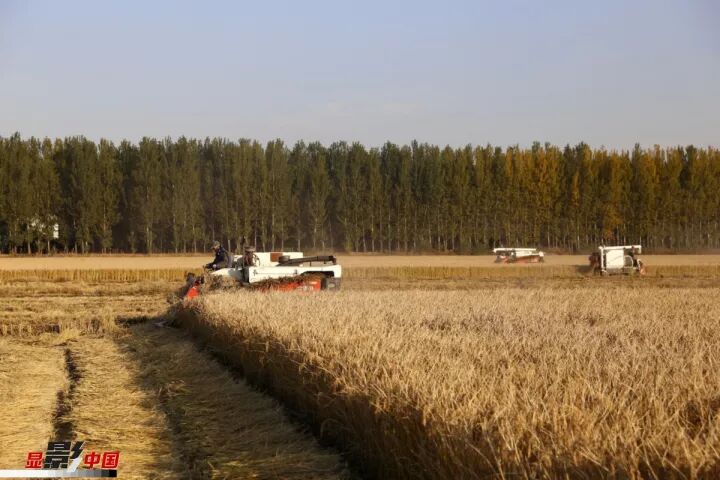 辽宁秋景:金秋时节,稻谷飘香,又到一年秋收时。随着水稻的渐渐成熟,辽宁水稻也进入了收割期,农田里一片繁忙景象。(姜冰摄)