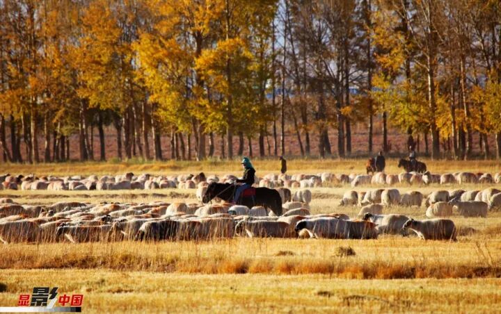 青海秋景:青海省海西蒙古族藏族自治州德令哈市秋景。夕阳西下,马背上的牧羊人结束了一天的放牧。(汪要强摄)