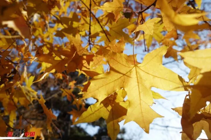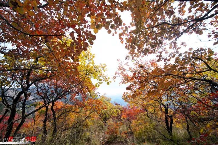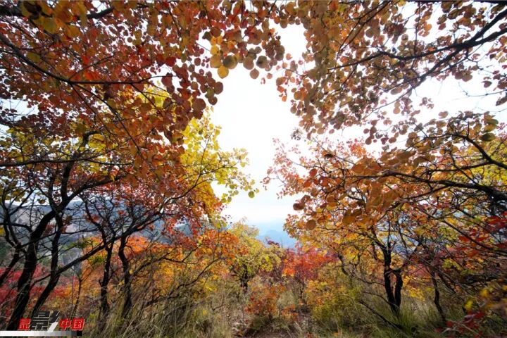 河北秋景:抬头仰望,山林间的树叶红黄相间、竞相斗艳。(魏芒种摄)
