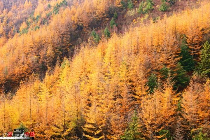甘肃秋景:这是在甘肃兰州官滩沟景区拍摄的落叶松。(宋燕摄)