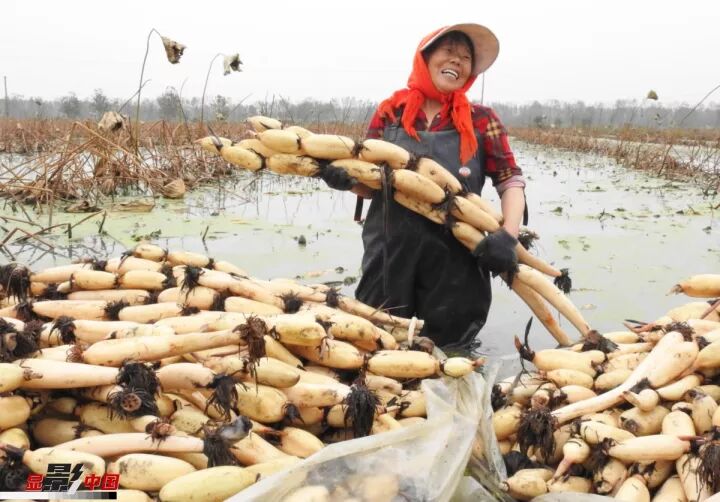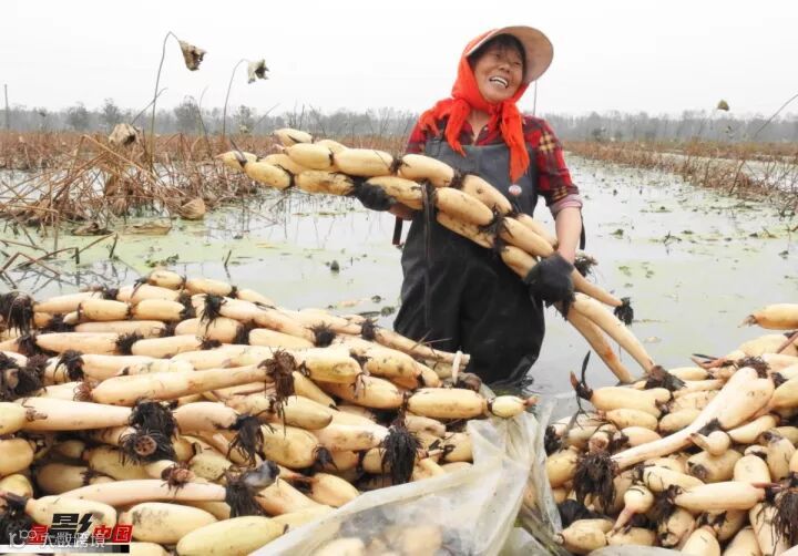 江苏秋景:10月10日,江苏连云港市海州区浦南镇富安村村民在采收莲藕。金秋时节,江苏连云港市海州区1万余亩无公害浅水藕喜获丰收,村民加紧采收上市供应市场。 (耿玉和 摄)