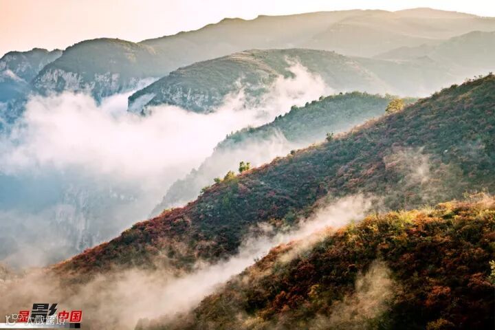 河北秋景:秋日的早晨,山里的雾气白净而透亮。行走在山间,红绿交织,仿佛身处仙境一般。(魏芒种摄)