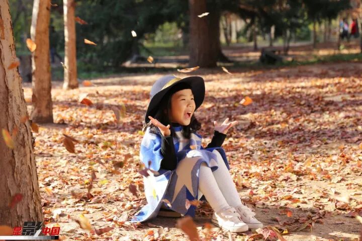 吉林秋景:长春市南湖公园,一名小女孩将满手金黄的叶子撒向空中。(田甜 摄)