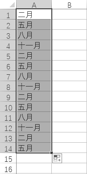 当用户只在第一个单元格中输入除了数值数据外的序列元素时,自动填充功能默认以连续顺序的方式进行填充。而当用户在第一个、第二个单元格内输入具有一定间隔的序列元素时,Excel会自动按照间隔的规律进行填充。例如,在图5-26所示的表格中,显示了从“二月”“五月”开始自动填充多个单元格的结果。