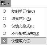 (2)选中填充起始单元格,使用双击或拖曳填充柄至目标区域,在填充完成后会在右下角显示【填充选项】智能按钮,单击该按钮,在出现的扩展菜单中选择【快速填充】选项,如图5-34所示。