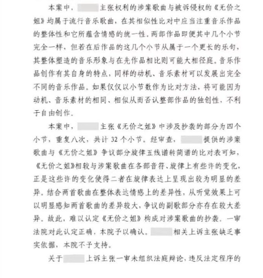 最近,一起涉及李宇春歌曲《无价之姐》的版权纠纷案件,在经历了四年的法律程序后,最终由北京知识产权法院作出了裁决。法院在仔细审查了案件细节后认为,《无价之姐》与被指控侵权的歌曲在整体情感表达和听觉体验上有显著区别,尤其是争议焦点的副歌部分也存在明显的不同。因此,法院认定《无价之姐》并未构成对另一歌曲的抄袭,并维持了一审的判决结果,驳回了原告的上诉。
