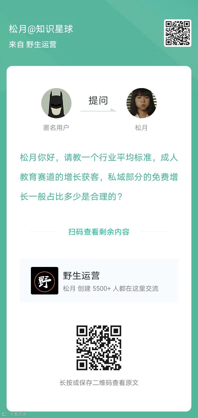 2、提问:成人教育赛道的增长获客,私域部分的免费增长一般占比多少是合理的?(扫码看全文)