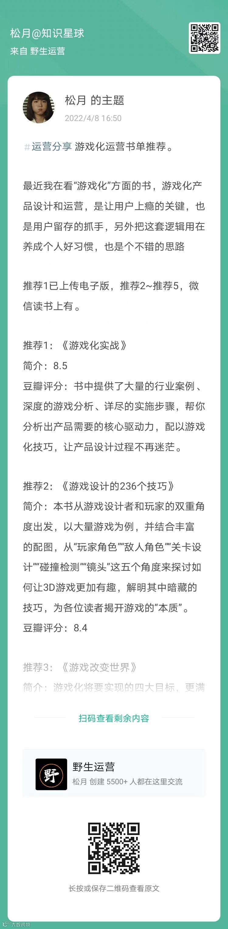 19、松月:游戏化运营书单推荐(扫码看全文)