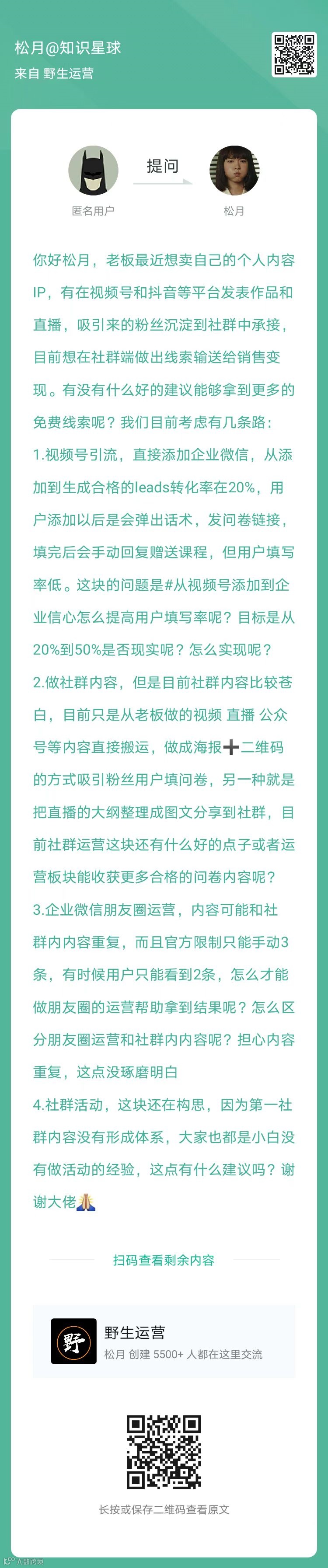 1、提问:老板突然想做个人内容IP,请问有什么运营思路?(扫码看全文)