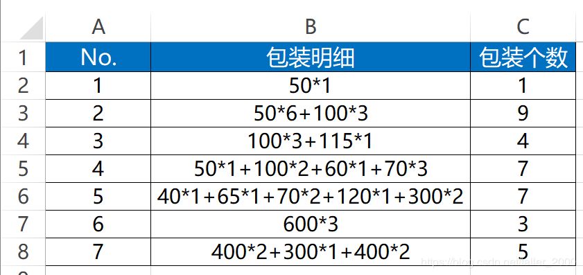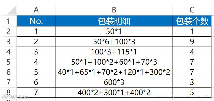 例如B3中明细为100*3+115*1对应的包装个数就是3+1。