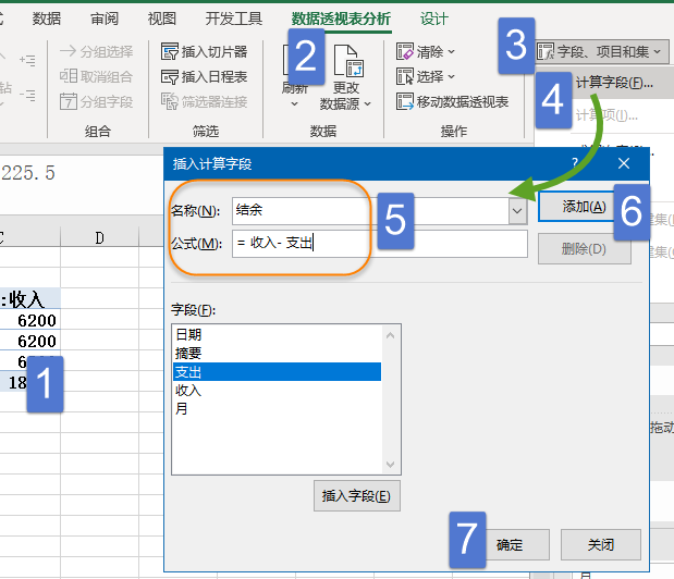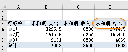 这时候的数据透视表还不能够看出每个月能够结余多少钱。