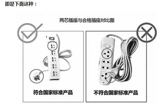 注意:旧版的万能孔插座另一个隐患在于插板上有三极插孔,但插座本身自带的插头上只有2个插销,俗称两芯插座,容易导致安全事故;
