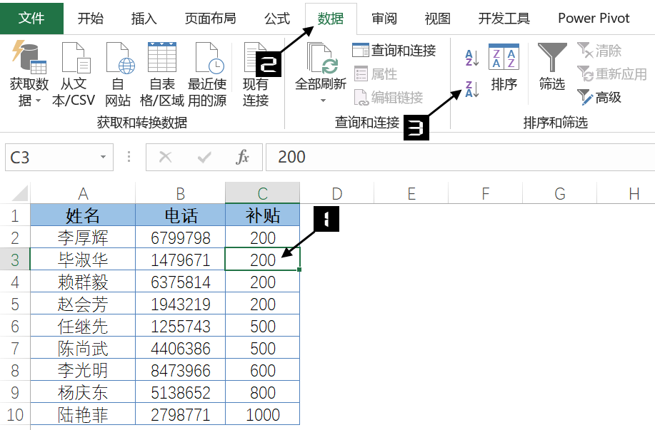 图 4-62 按“补贴”为关键字降序排序