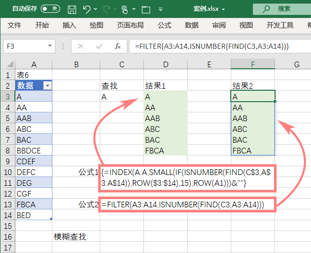 模糊查找也是常见需求。比如,找出下图表6中所有包含字母A的,又该如何穷极公式所能呢?