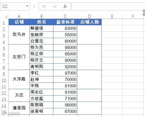 同时选中D2:D13单元格区域,编辑栏输入公式后按Ctrl+回车: