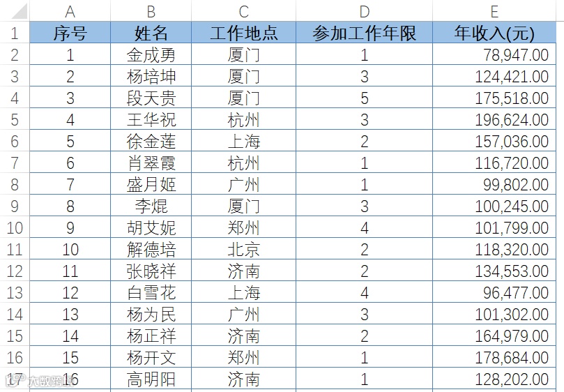 图4-113展示了某培训机构采集到的学员年收入数据表,需要采用不重复抽样的方式,从中随机抽取100条记录。