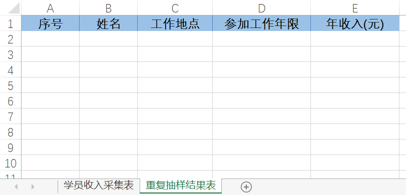 步骤1:在当前工作簿,新建一张工作表,命名为“重复抽样结果表”并制作表头,如图4-116所示。