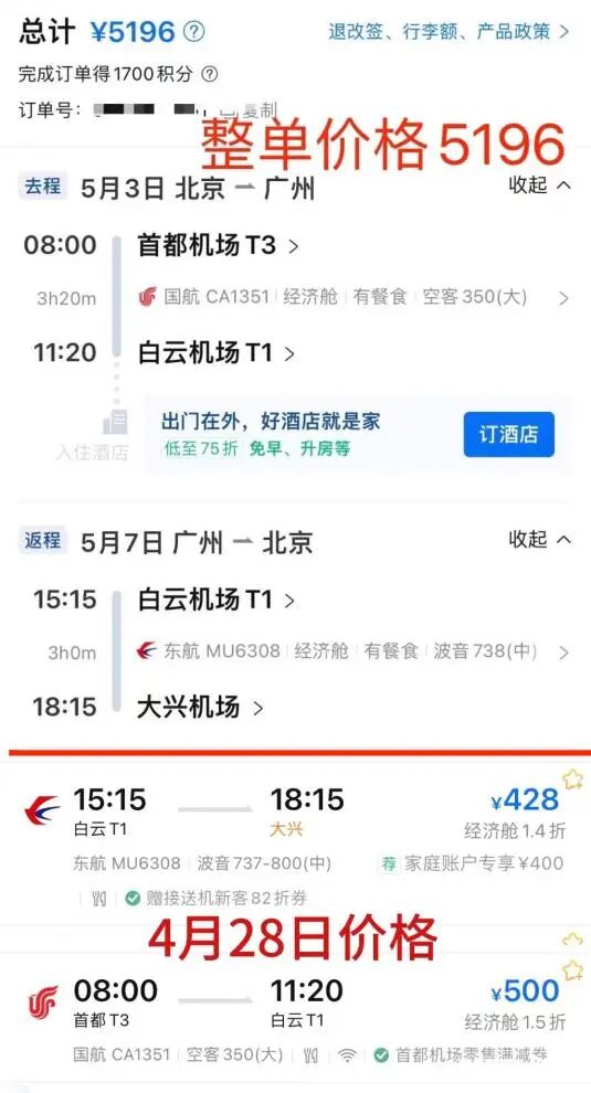 近期,许多预先订购了“五一”假期机票的网民纷纷表达了自己的不满情绪:“我花1560元买的机票现在只要580元,关键是我是三个人,等于白白损失了3000元”;“购票时是1800元,现在降到800元?我们一家三大一小,相当于直接蒸发了3000元。谁能料到,仅仅是单程机票,我就花费了5000多元,而且乘坐的还是低成本航空。还没出发,心情已经大受影响!” 一些网友总结指出,“这两年的小长假似乎都玩这样的把戏,先把票价抬到全价,等没人买再一步步降价。”为了不成为“被割的韭菜”,网友们开始分享他们与在线旅行平台(OTA)和航空公司“智斗”的经验。