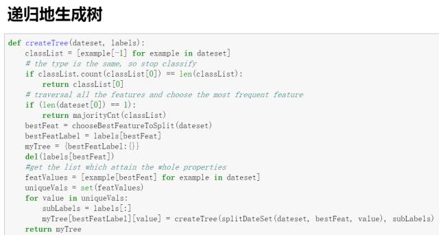 ID3算法的核心是在决策树各个结点的上应用信息增益准则选择特征,递归地构建决策树。