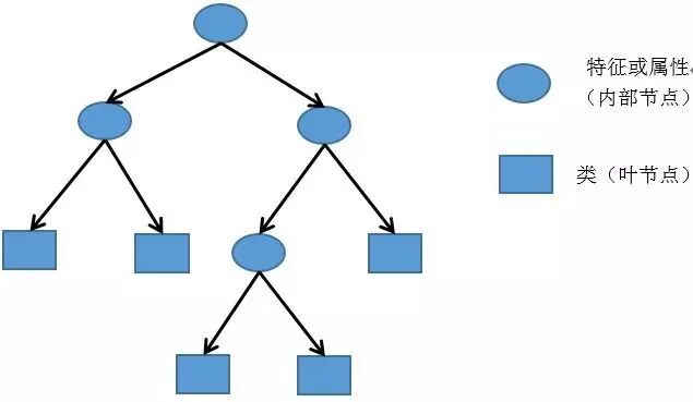 根节点是决策树最开始的结点,内部结点是可以继续分类的结点。