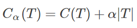 上式中,C(T)表示模型对训练数据的预测误差,即模型与训练数据的拟合程度,|T|表示模型复杂度,参数参数