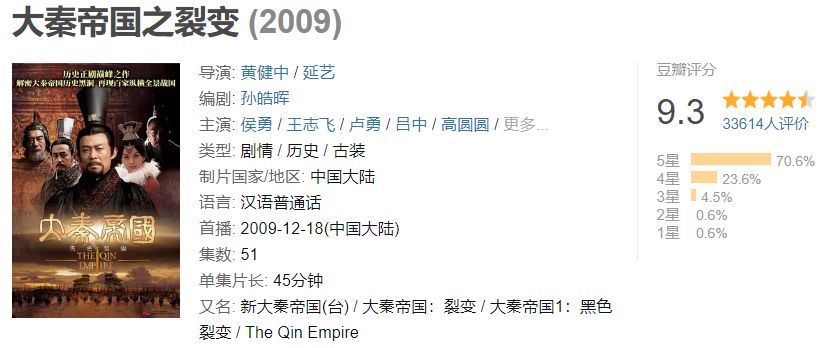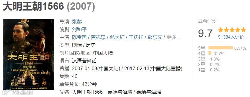 这个假期看了三部电视剧:《大明王朝1566》、《大秦帝国之裂变》和《大明风华》,前两部都是比较经典的历史剧,豆瓣得分分别为9.7和9.3,后一部是现在的一部热播剧,不算啥经典,所以得分也比较低。这一篇就来聊聊观后感。