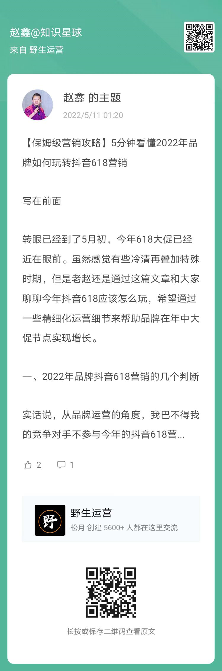 6、赵鑫:5分钟看懂2022年品牌如何玩转抖音618营销(扫码看全文)