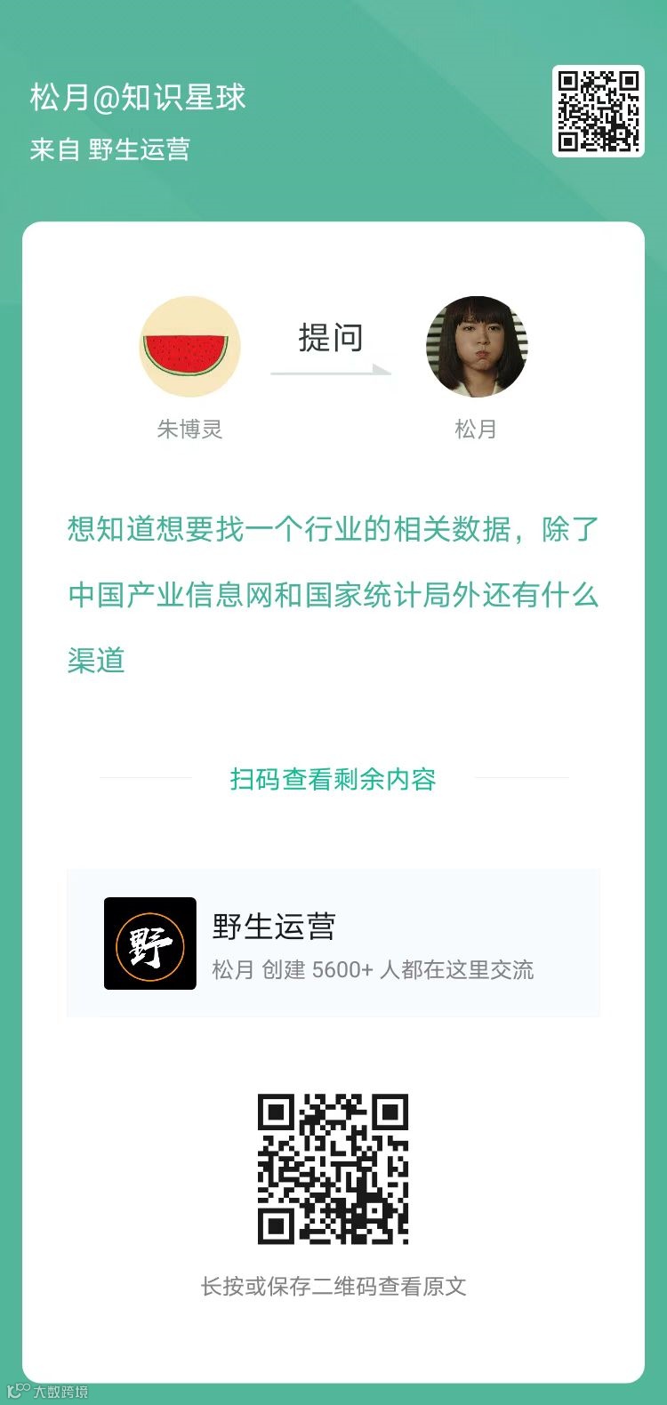 2、提问:想知道想要找一个行业的相关数据,除了中国产业信息网和国家统计局外还有什么渠道?(扫码看全文)