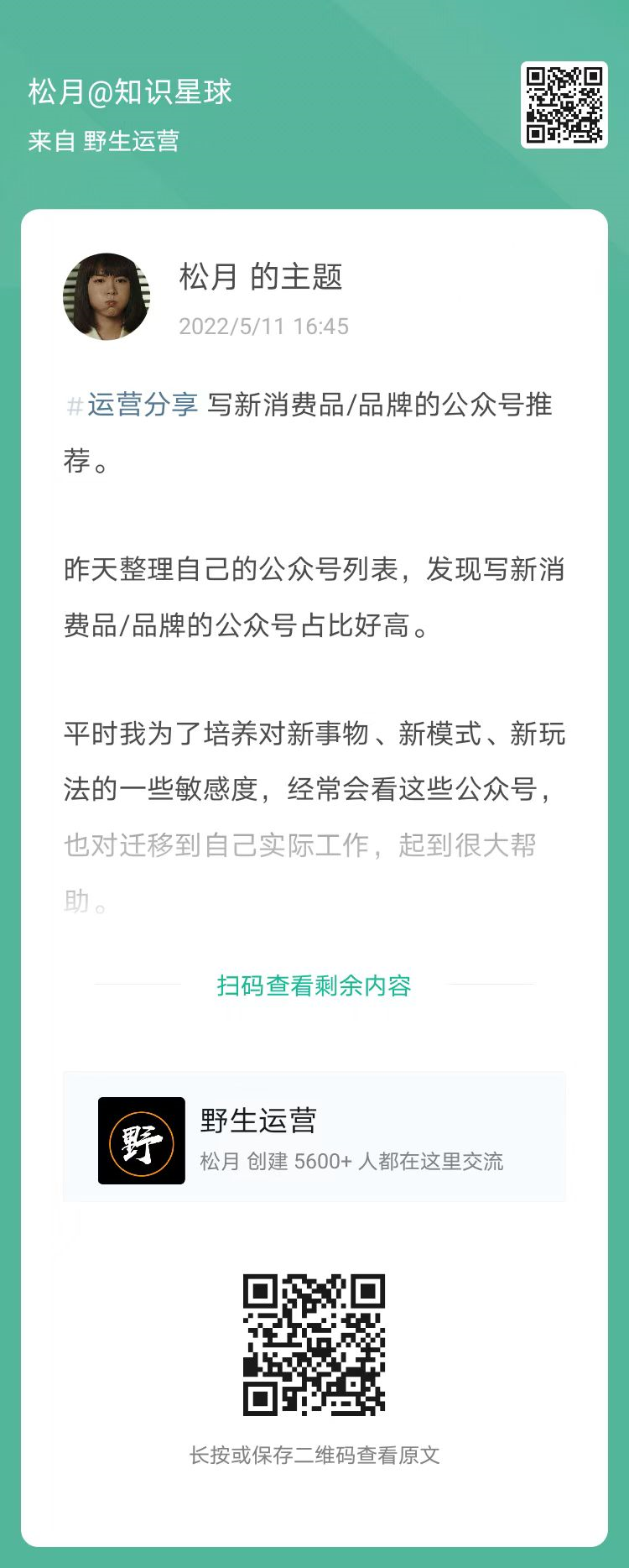 9、松月:写新消费品/品牌的公众号推荐(扫码看全文)