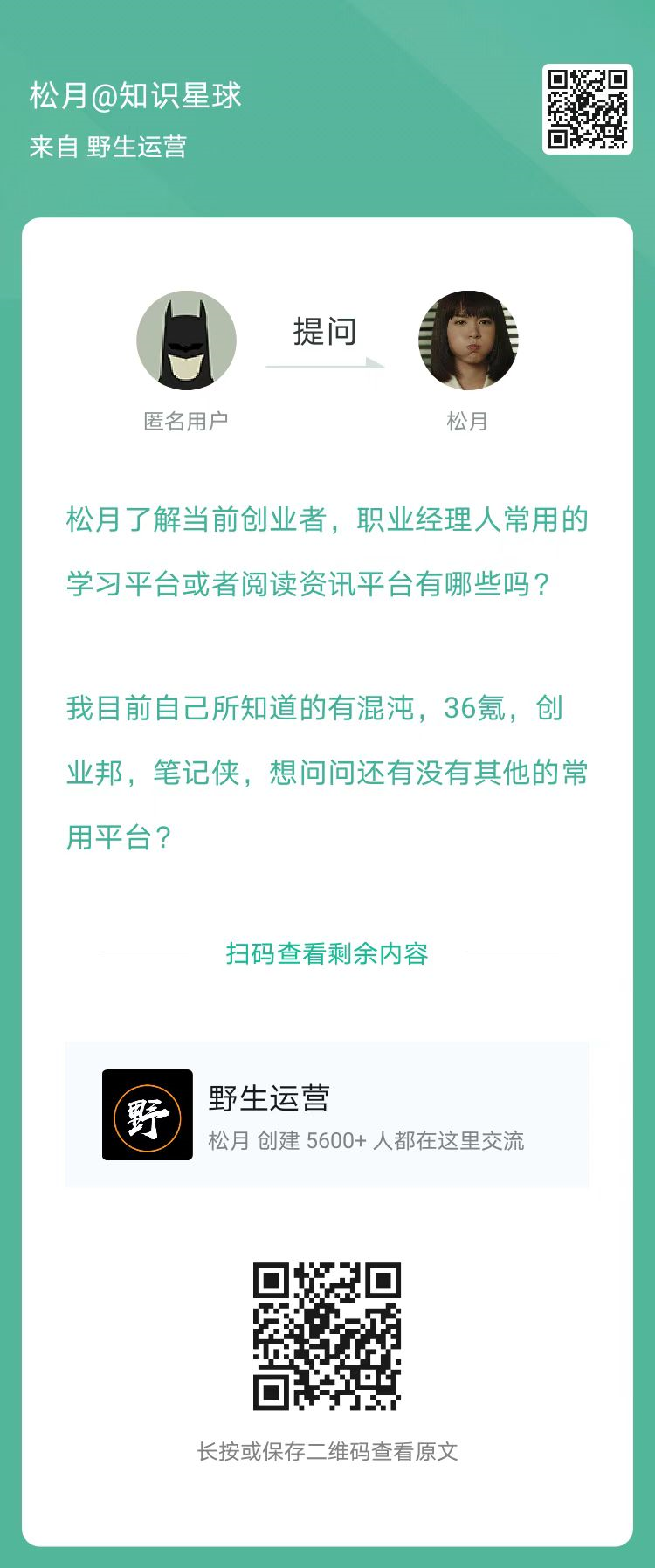 4、提问:当前创业者,职业经理人常用的学习平台或者阅读资讯平台有哪些吗?(扫码看全文)