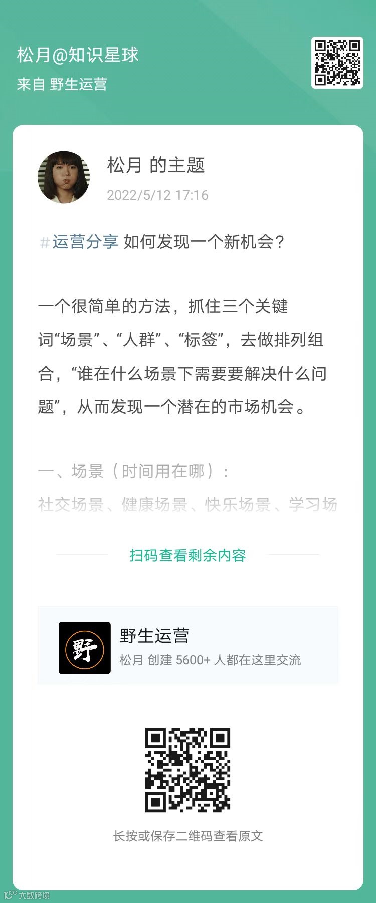 欢迎加入野生运营星球,每周一次快闪分享、运营人学习一手资料、1V1答疑……等硬核干货,而且还能一次入手包括 《2021上半年增长案例合集》、4589 个案例拆解全库、130+ 场群分享的音频+逐字稿、N多运营工具包和资料,就问你一句,值不值?