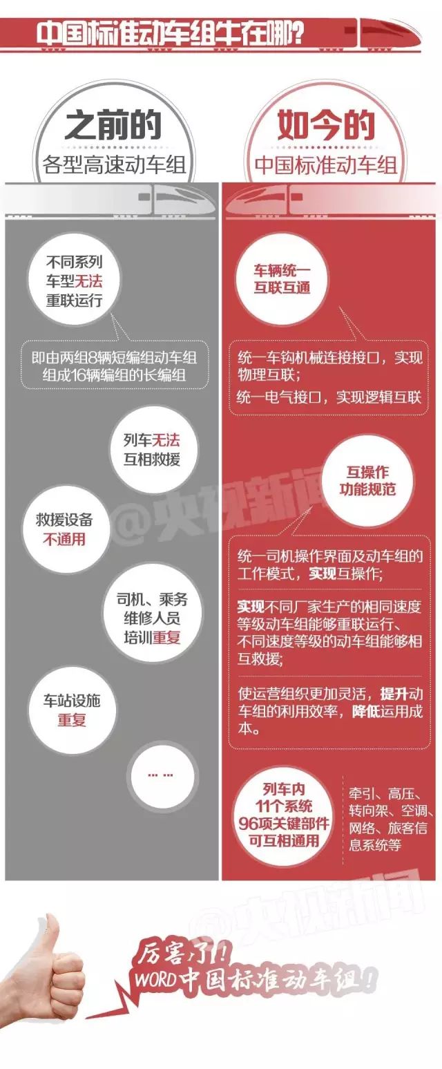 “蓝海豚”和“金凤凰”这两辆列车不仅外观不同,它们还分别来自不同生产厂家,内部电器线路设计也不相同。这两辆列车之所以能够实现重联,是因为它们都严格遵循中国标准动车组规范生产。而在统一标准后,动车组不仅能够实现重联运行,整体的性价比也得到了很大提升。