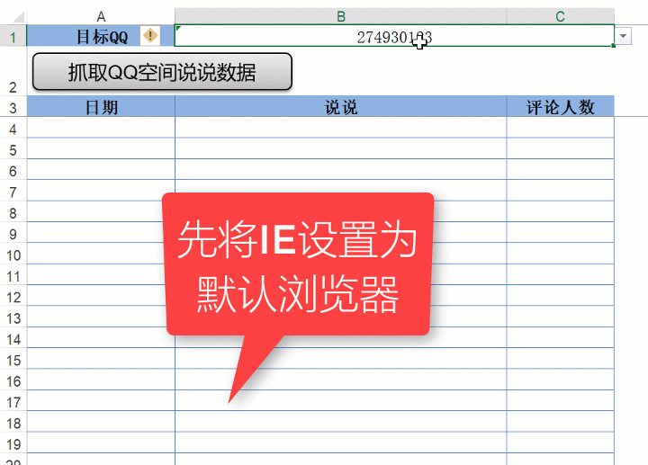 如何用VBA代码,爬取指定QQ帐号在空间里的说说数据?