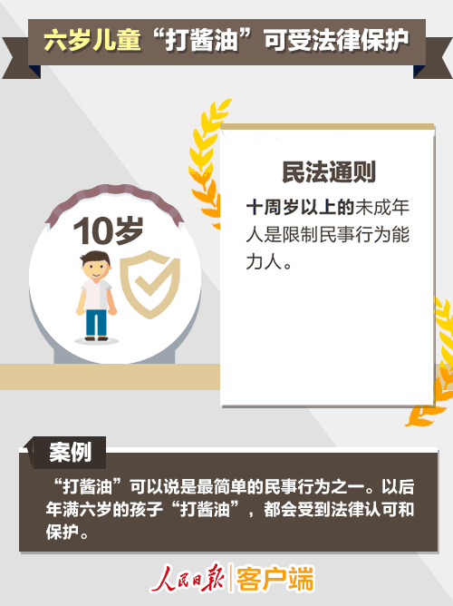比方说让孩子去“打个酱油”,其实在法律上也是个“买卖合同”,如果说以前还对这个合同的效力有点担心的话,那么草案通过之后,6周岁以上的未成年人再去就不存在这个问题了。