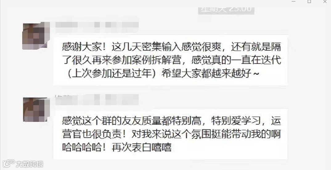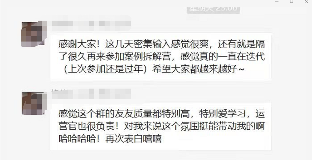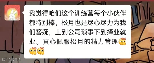 摘录往期参与者评价,有人拿到了大厂offer,有人在每天的精进中系统学到了用户运营玩法的精髓,有人在这里重新找到了学习的动力: